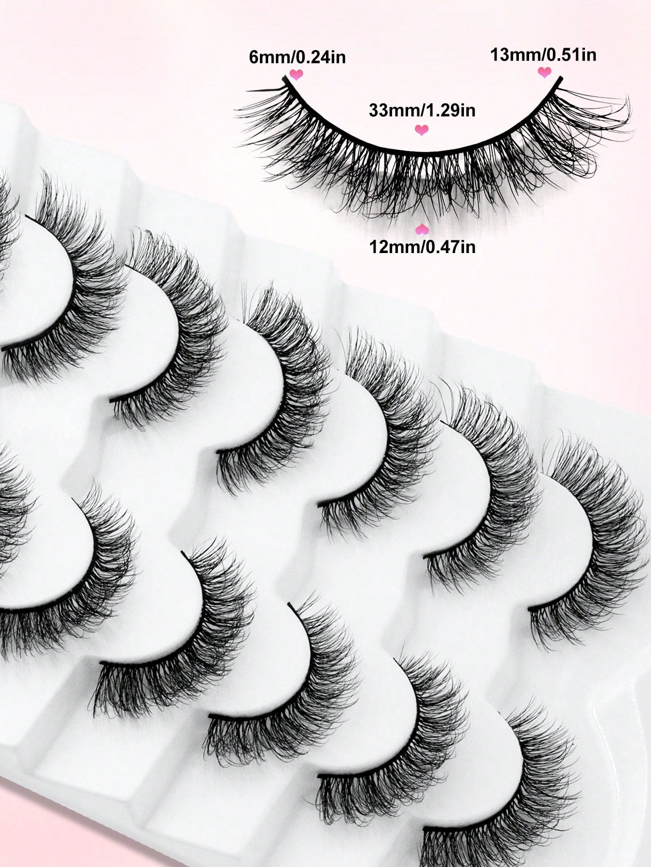 7 Pairs Natural Fluffy False Eyelashes – Thick Curling Manga Style Strip Lashes
