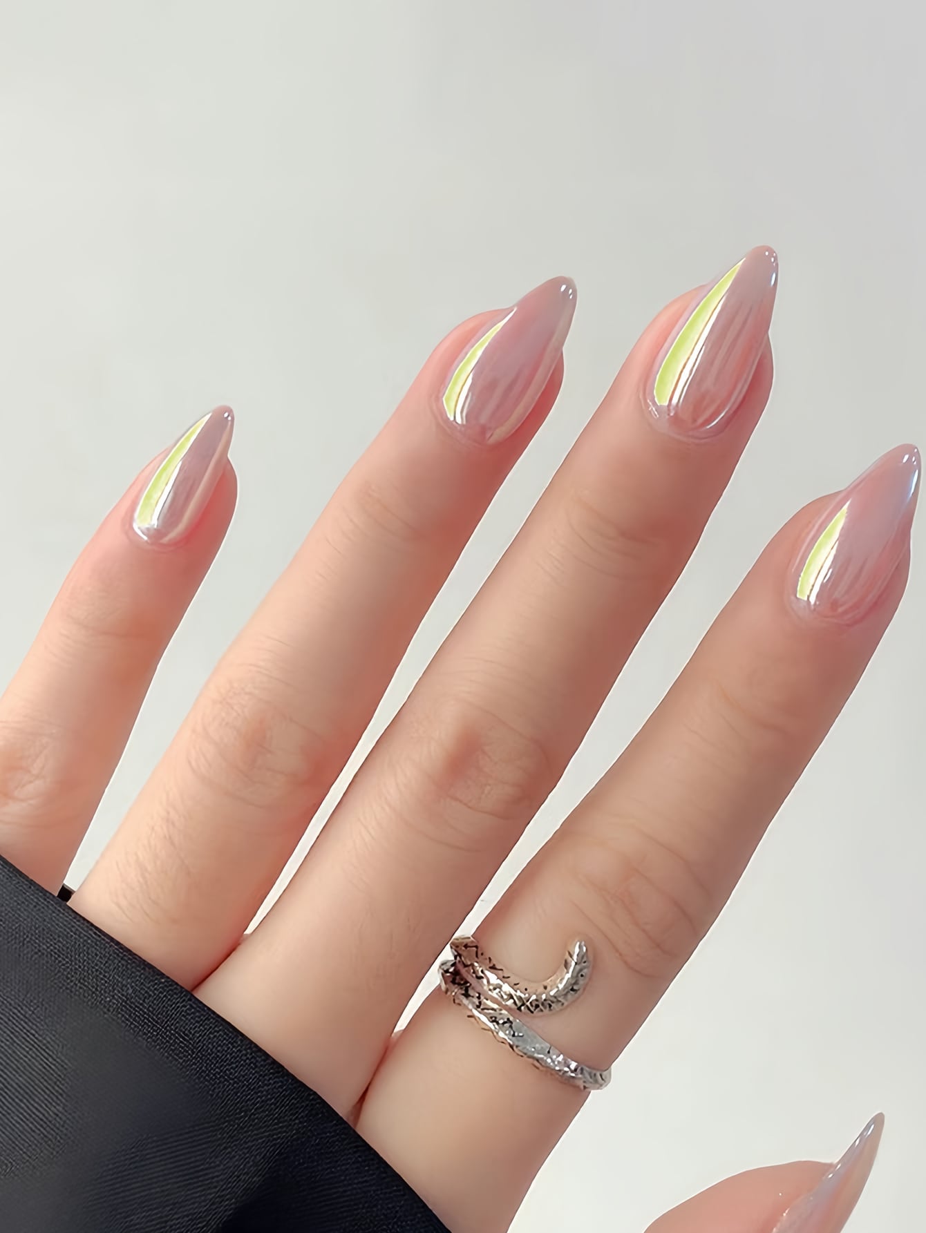 Pointed Almond Shape Mermaid Design with Aura effect Press on Nails