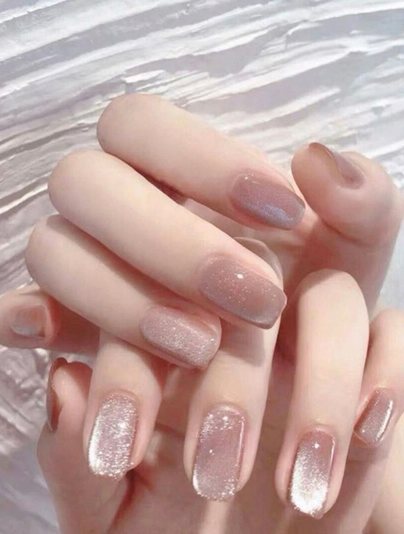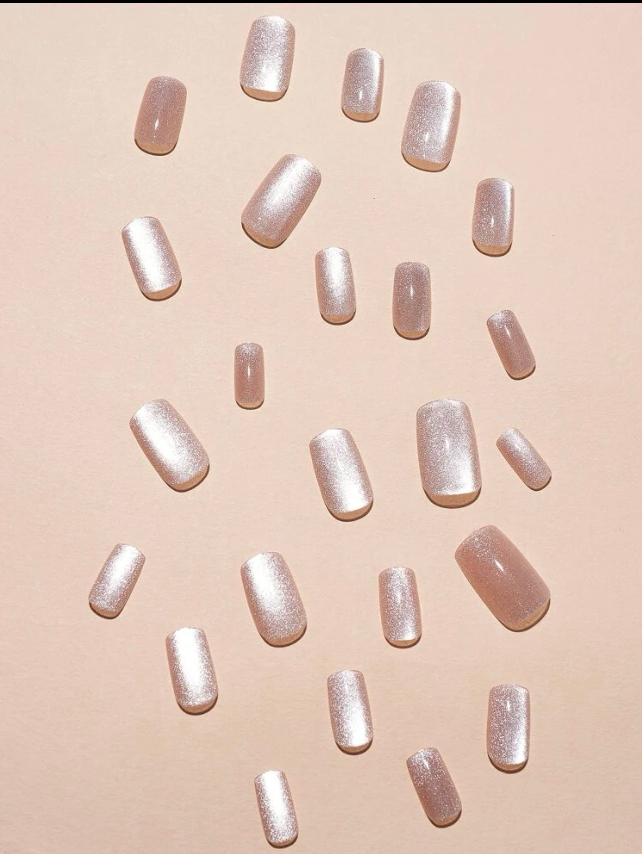Premium Square Nude Cat Eye Glitter Press on Nails