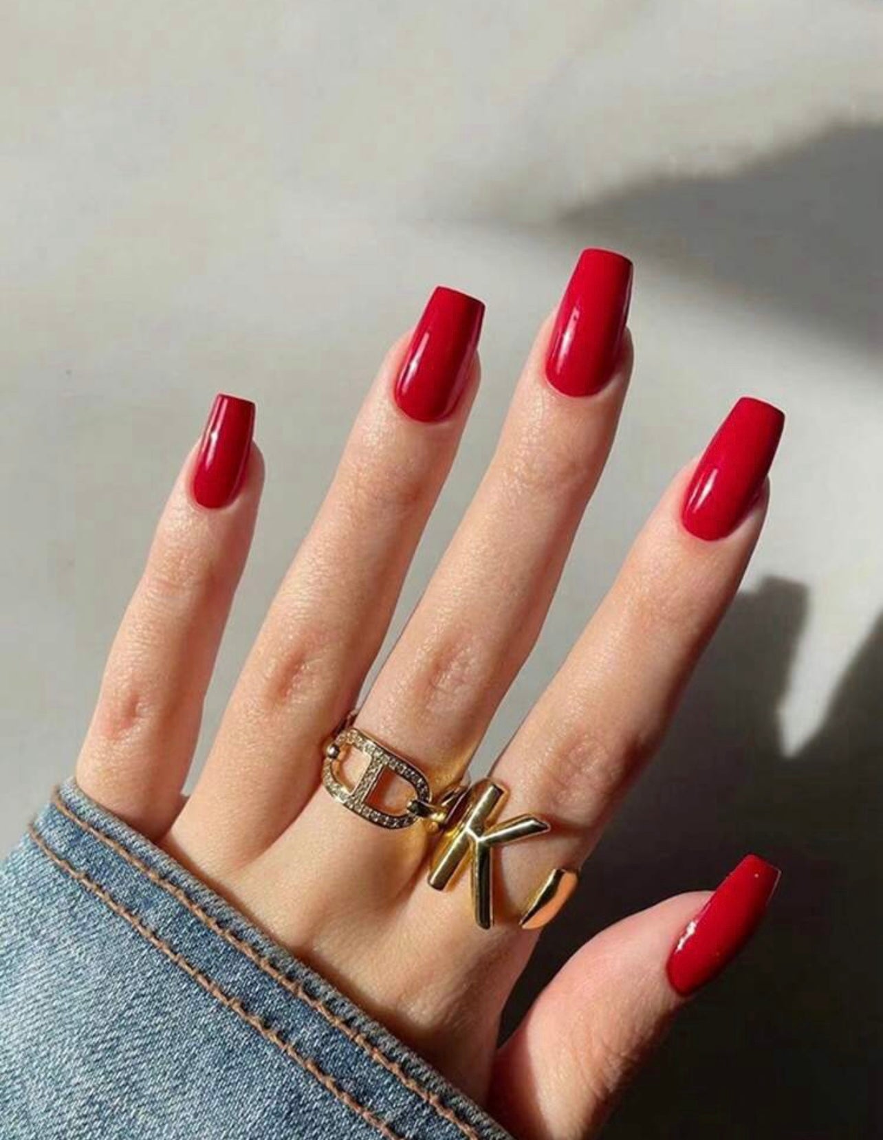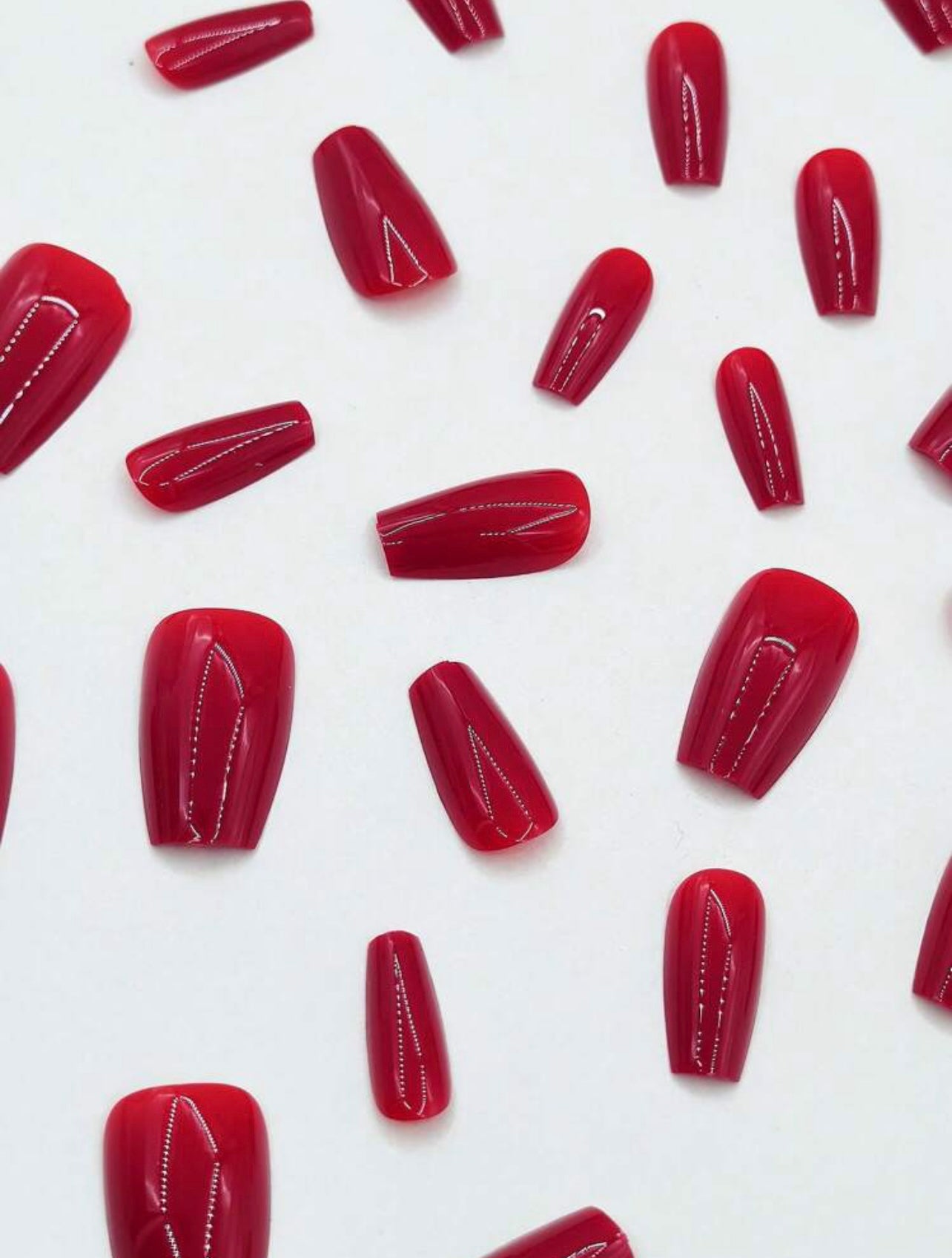 Short Coffin Solid Red Press on Nails